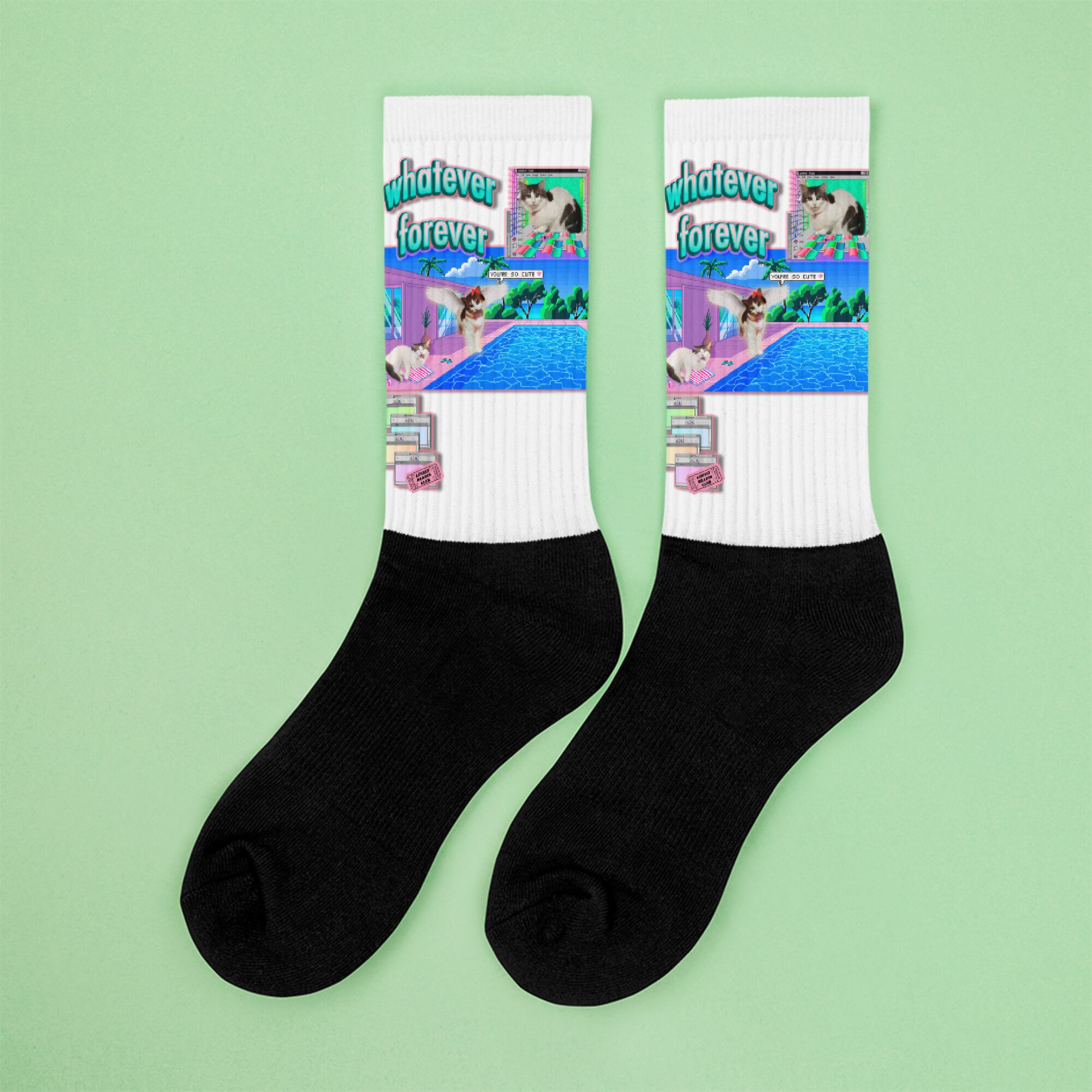 底の部分にクッション性があるためとても履き心地の良い靴下。足先は黒く、足首に沿って鮮やかで色褪せない色で印刷が施されます。