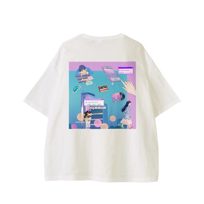 90's anime & momo ビッグシルエット ポケットTシャツ(バックプリント) 5.6oz